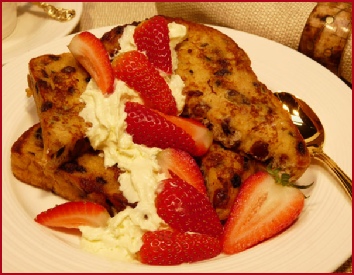 2. Melt half the butter in a large frying pan. Dip 2 slices of Tres Bon Fruit loaf,
